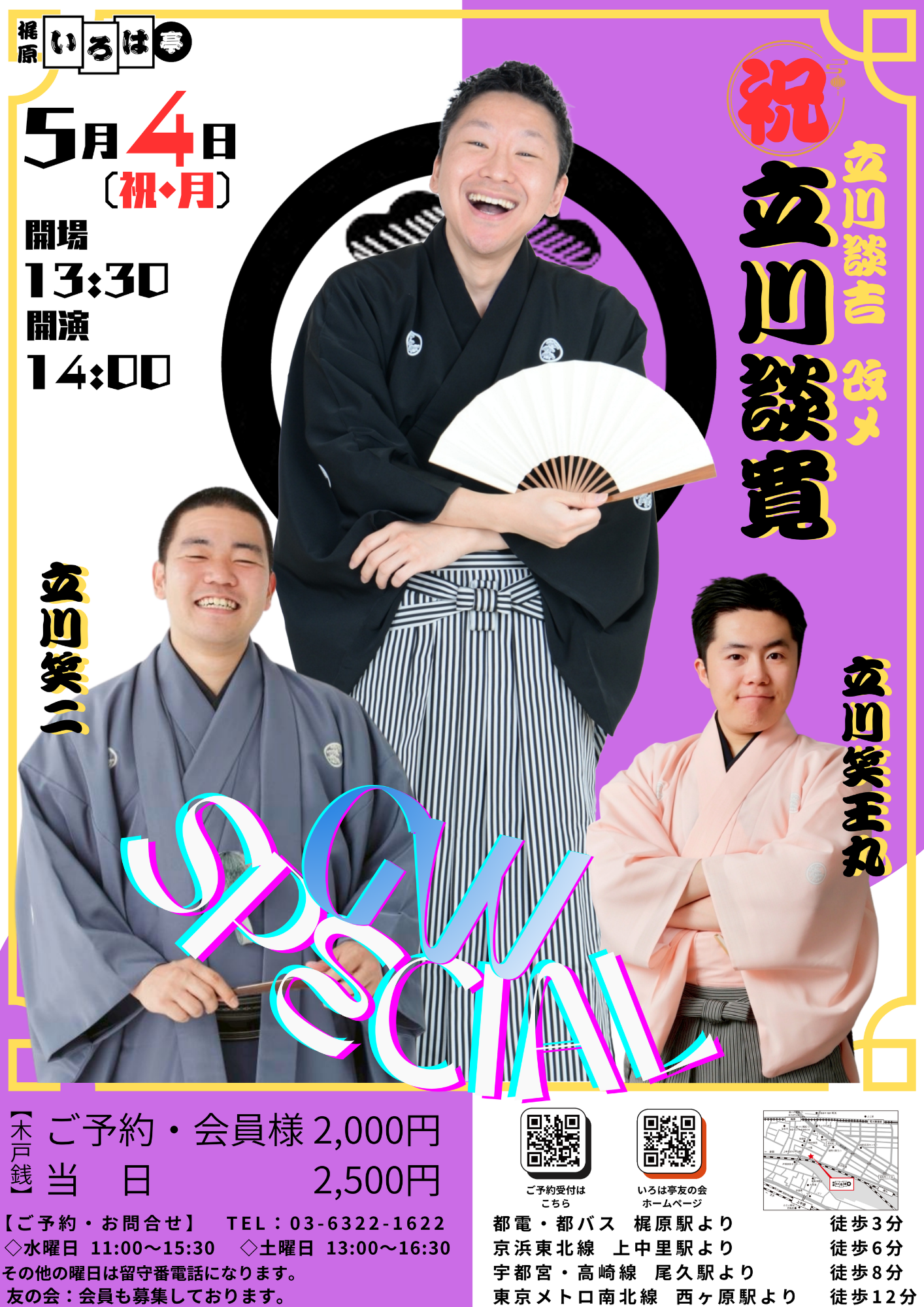 [出演]前座,立川生九郎,立川らく人,立川談寛(仲),立川わんだ,立川談修ワタナベエンターテインメント芸人も1組出演!